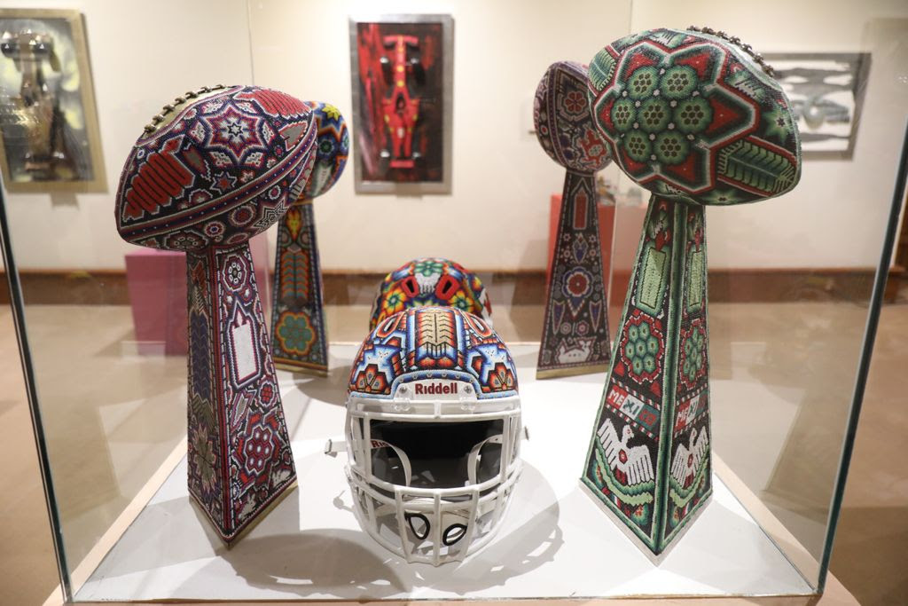 “Es un trabajo de más de 500 manos cien por ciento mexicanas, se emplearon más de 150 millones de chaquiras para las 94 piezas aquí expuestas, la chaquira es muy distintiva de México alrededor del mundo”, explicó.
