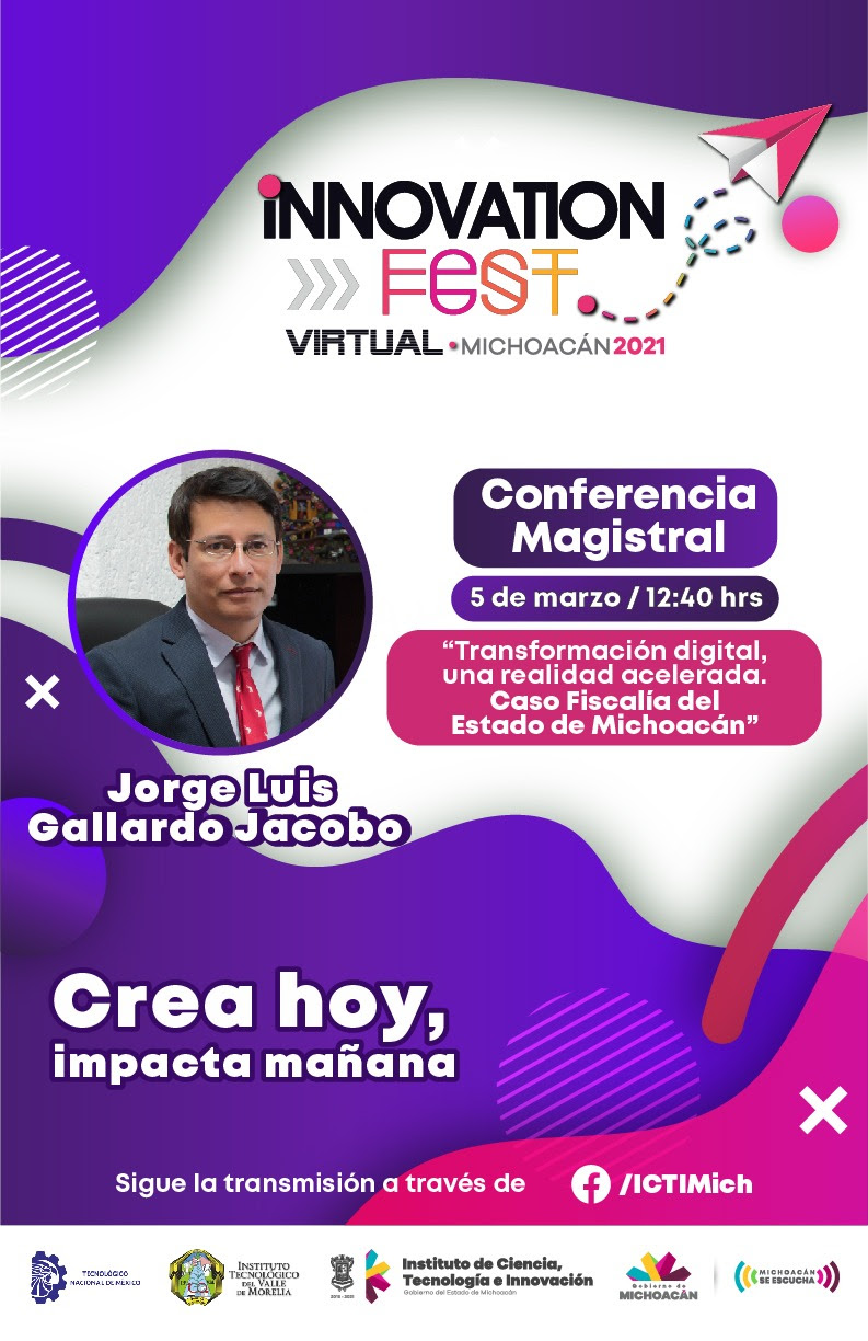 Innovation Fest 2021. Virtual es el resultado de una red de trabajo en la que participaron más de una veintena de instituciones públicas y privadas bajo la coordinación de Gobierno del Estado a través del Instituto de Ciencia, Tecnología e Innovación, ICTI y el Insituto Tecnológico Nacional, Campus Valle de Morelia, que en esta 4ª edición funge como sede anual.