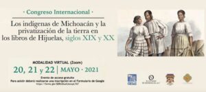 La Universidad Michoacana de San Nicolás de Hidalgo (UMSNH), a través de la Facultad de Historia, hace extensiva la invitación a toda la comunidad universitaria y público en general a participar en el Congreso Internacional “Los indígenas de Michoacán y la privatización de la tierra en los libros de Hijuelas, siglos XIX y XX”, que se llevará a cabo en modalidad virtual del 20 al 22 de mayo.
