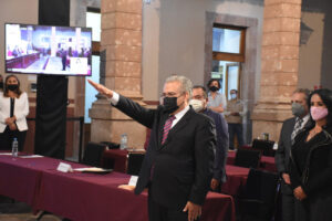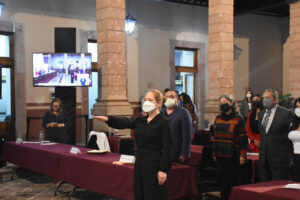 De igual manera y resaltando los atributos de experiencia, capacidad, eficiencia, preparación, disciplina y probidad del servidor público, rigiéndose bajo los principios de excelencia, profesionalismo, objetividad e imparcialidad, se avaló la toma de protesta de Magdalena Monserrat Pérez Marín y Laura Elena Alanis García para ocupar la Magistratura de la Quinta Sala Civil y la Octava Sala Penal, ambas del Poder Judicial del Estado, siendo esta última por el término que dure en su encargo como Consejera la Magistrada Dora Elia Herrejón Saucedo.
