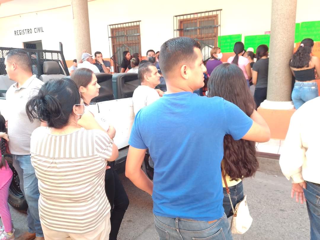 Los inconformes colocaron cartulinas en el Palacio municipal para manifestar su respaldo al docente, integrante de la Sección XVIII de la CNTE.
