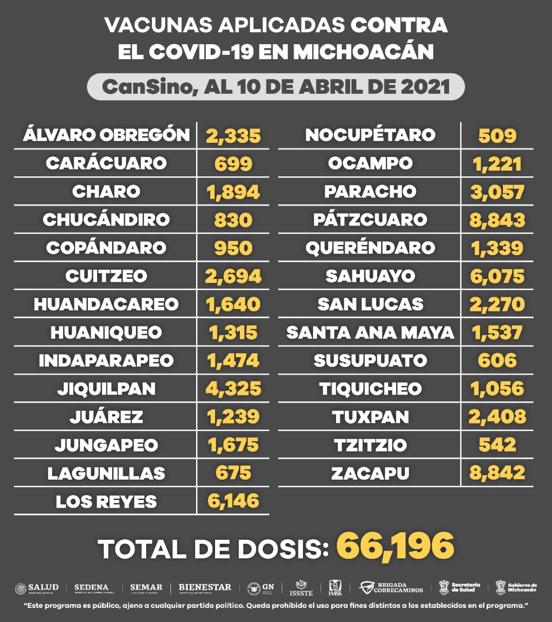 En los municipios en los que se aplicó el biológico de AztraZeneca, Sinovac y Pfizer, se les invita a estar atentos a la llegada de la segunda dosis para completar su esquema.