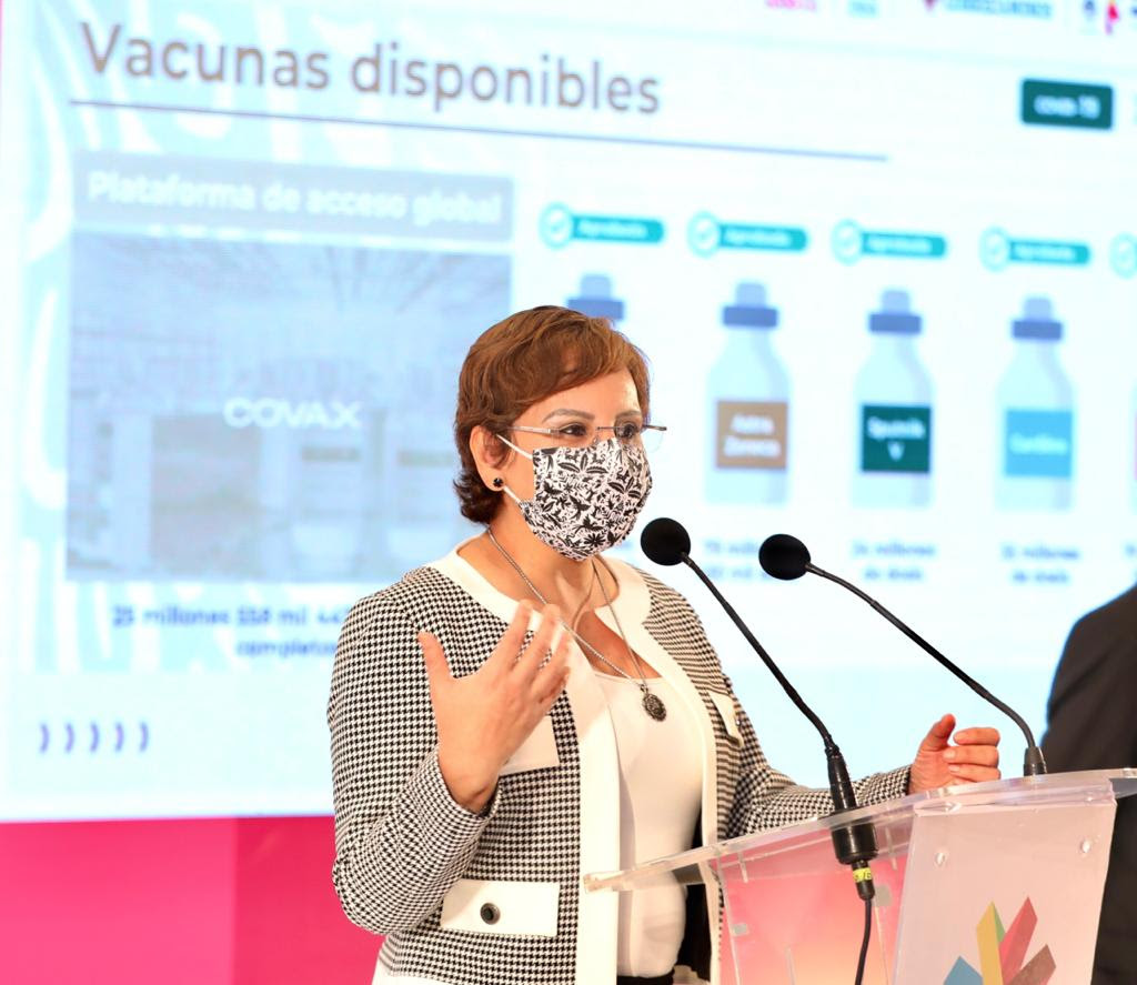 Al hablar de los avances en la inmunización, la secretaria de Salud informó que, dentro del Plan Nacional de Vacunación, a la fecha han llegado 84 mil 960 dosis de vacuna con lo que se cubre sólo el 3 por ciento de la meta de la población.