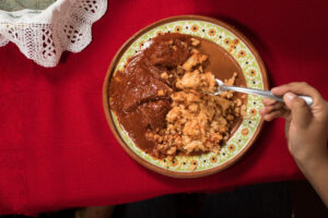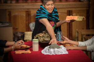 Ejemplifica: “A través de sus paranguas se han hermanado para conformar el exquisito mosaico de colores y sabores que es la cocina mexicana. En torno al metate, el molcajete y otros utensilios ancestrales, las mujeres forjaron amistad y, sin buscarlo, sus conocimientos y técnicas se convirtieron en identidad, cargando de simbolismo el acto de comer en comunidad”.