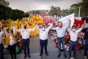 Arroparon a González Gutierrez, los candidatos a diputado federal, Mauricio Prieto Gómez; a diputados locales Toño Soto y Pablo Anuar; así como integrantes de su planilla.
