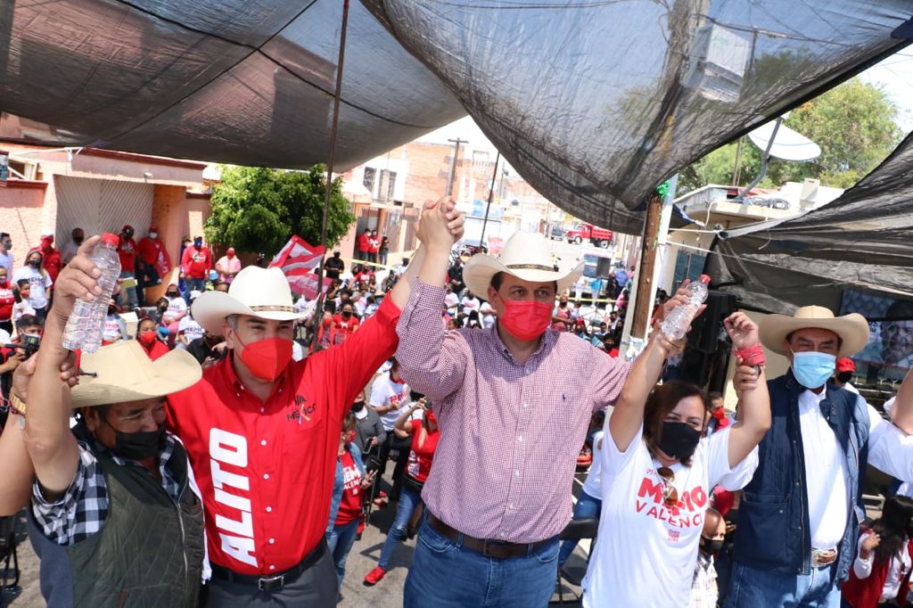 Erika Pérez Torres, priista y representante de las y los habitantes, le refrendó el apoyo a Memo Valencia como él los ha ayudado cuando se ha necesitado, sin ningún interés de por medio.