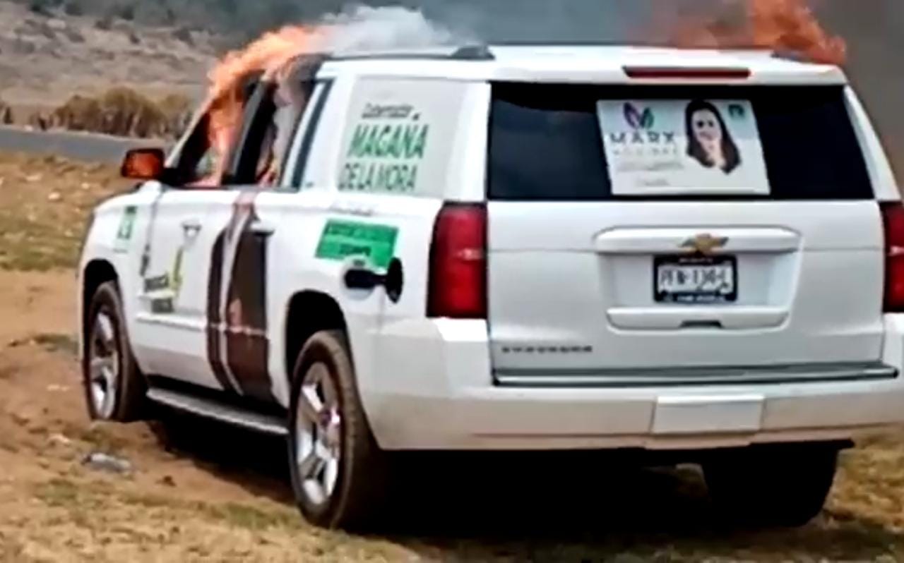 NAHUATZEN MICH., 5 de mayo.- Un grupo de hombres armados robaron y quemaron la camioneta del líder estatal del Partido Verde Ecologista de México (PVEM), Ernesto Núñez Aguilar.
