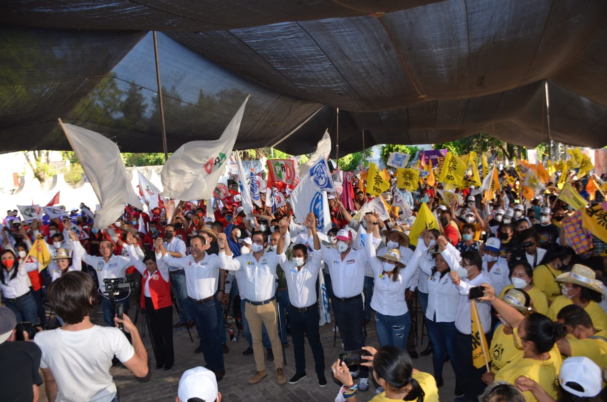 El zitacuarense fue recibido en la entrada de la población y llevó la fiesta a las y los habitantes, quienes al escuchar el paso de los contingentes, salieron de su domicilio a saludar al candidato para acompañarlo hasta la plaza principal, donde ya lo esperaban dos mil 200 simpatizantes del PRI, PAN y PRD.