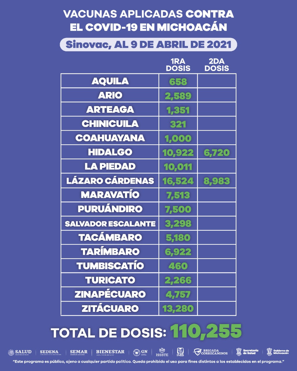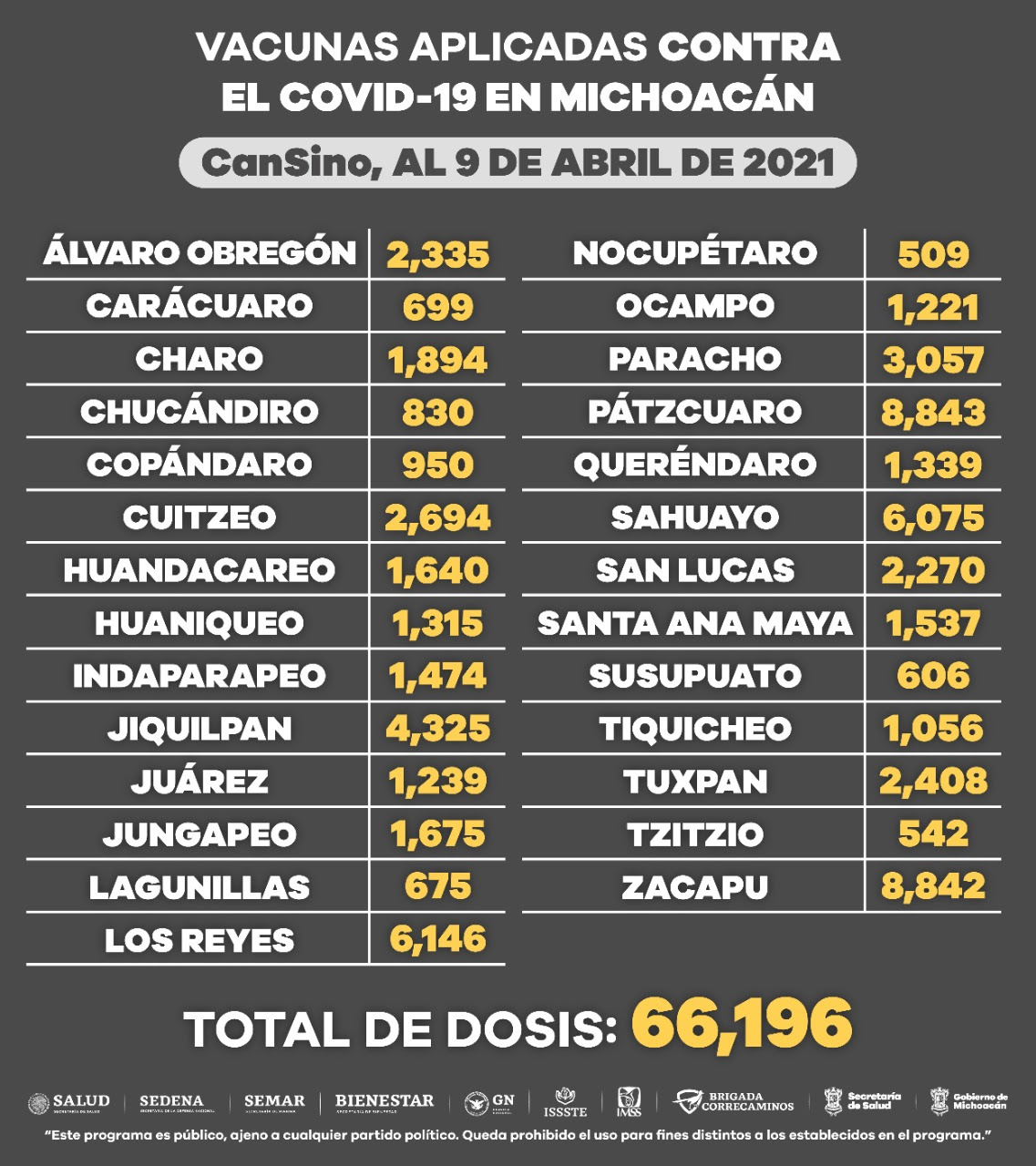 La Secretaría de Salud de Michoacán (SSM), informa que en la entidad se han aplicado 359 mil 862 vacunas contra COVID-19 a adultos mayores de 60 años.