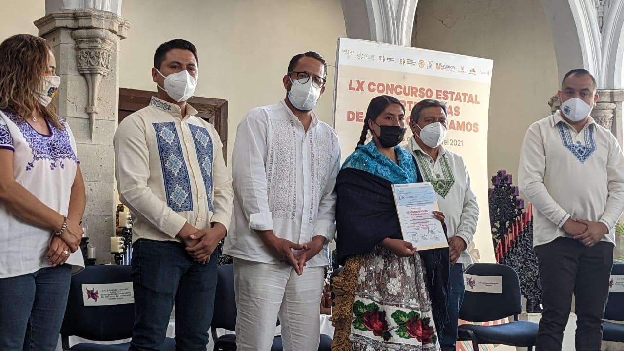 El galardón “Victoriano Salgado Morales”, fue para el artesano Tomás Caro Romero, de Uruapan, en la categoría de guitarras, con una guitarra concierto de abeto granadillo; el galardón “Antonio Hernández González”, lo obtuvo la artesana María Guadalupe Cortés Bravo, de la comunidad de Angahuan, en la categoría de textil de algodón y lana, con un rebozo blanco y negro.